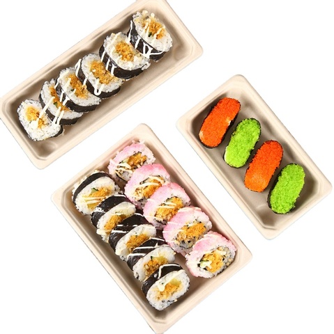 उच्च गुणवत्ता गन्ना सुशी बॉक्स biodegradable डिस्पोजेबल गन्ना खोई ढक्कन के साथ सुशी पैकेजिंग बॉक्स