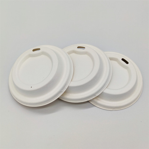 डिस्पोजेबल Biodegradable खाद गन्ना खोई कप Lids Leakproof 80mm 90mm Takeout गन्ना कॉफी कप ढक्कन