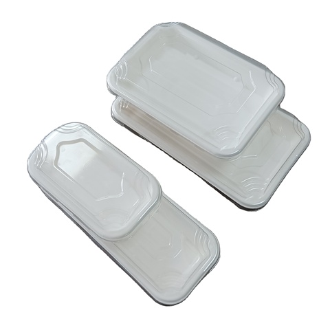 खाद गन्ना खोई सुशी बॉक्स पारदर्शी विरोधी कोहरे पालतू ढक्कन के साथ खोई सुशी ट्रे के लिए ढक्कन के साथ दूर ले पैकेजिंग